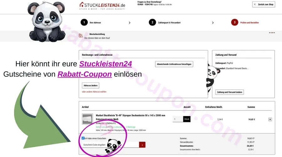 Bei Stuckleisten24 spart ihr aktuell 5 % auf eure Bestellung ab einem Mindestbestellwert von 120 € – einfach den passenden Rabatt-Coupon 🐼 im Warenkorb einlösen und bis 31. Dezember 2025 profitieren.