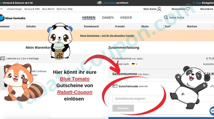 So könnt ihr mit Rabatt-Coupon bei Blue Tomato sparen: