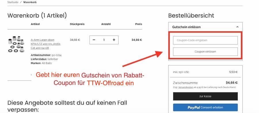 Einfach den Ttw-offroad Gutscheincode eintragen und sparen.