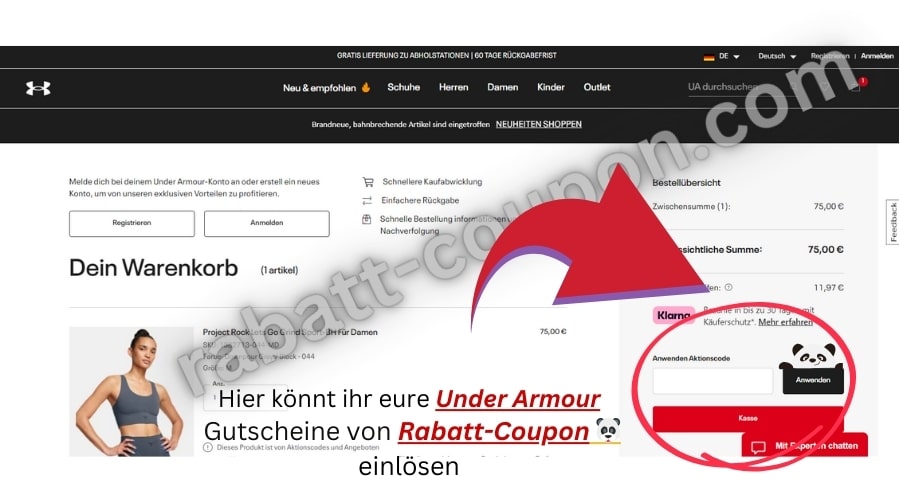 Anleitung zum Einlösen von einem Under Armour Gutschein: