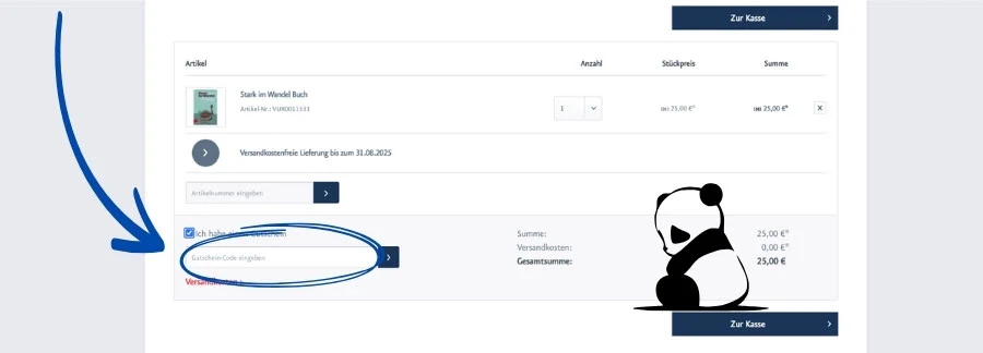 - 🎫 Tragt den Gutscheincode in das vorgesehene Feld ein