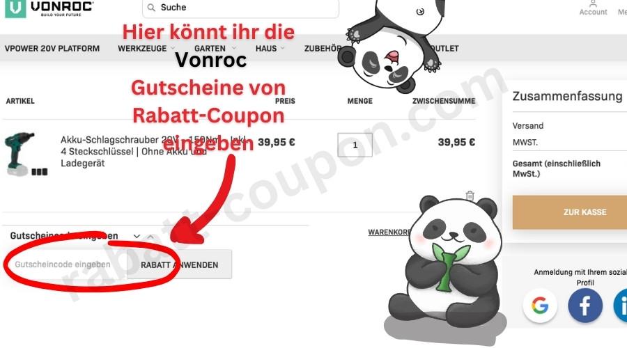 Anleitung zum Einlösen von einem VONROC Gutschein: