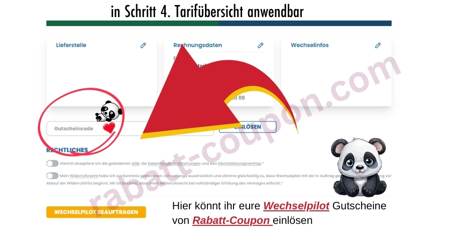 Rabatt-Coupon 🐼 gilt für neue Strom- oder Gasverträge über Wechselpilot.