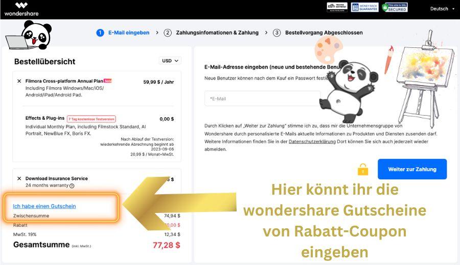 Den Wondershare Gutscheincode einfach im Warenkorb eingeben und schon könnt ihr sparen.