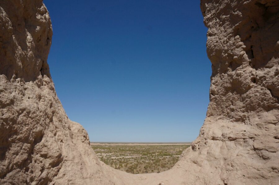Trocken und leer. Die Steppenlandschaft im Westen.