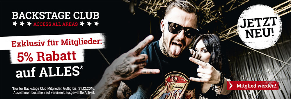 Ein weiterer sehr interessanter Rabatt wird allen Backstage Club Mitgliedern angeboten. Diese erhalten noch bis Ende des Jahres einen 5% Rabatt auf alles. Jetzt Mitglied werden.